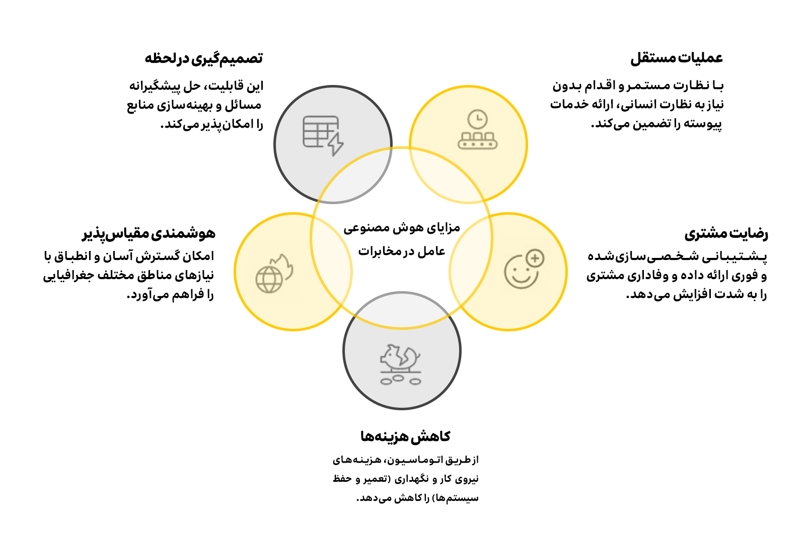 - تعامل شخصیسازیشده و پیشگیرانه: مشتریان، تعاملی متناسب با نیاز خود و براساس پیشبینی دقیق مشکلات دریافت میکنند.